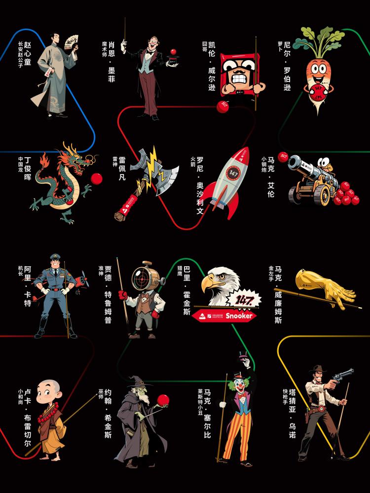 围绕斯诺克明星球员的卡通形象